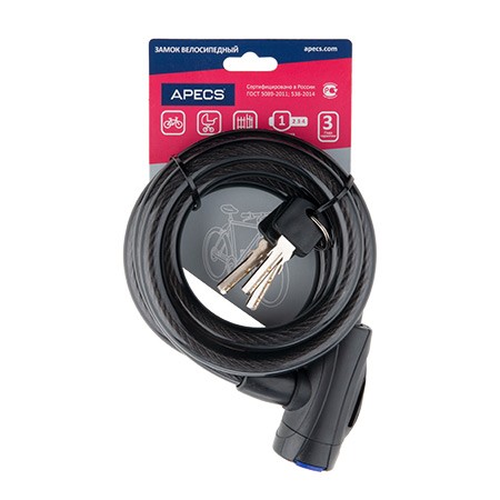 Замок навесной велосипедный (трос) Apecs PD-84-150СМ